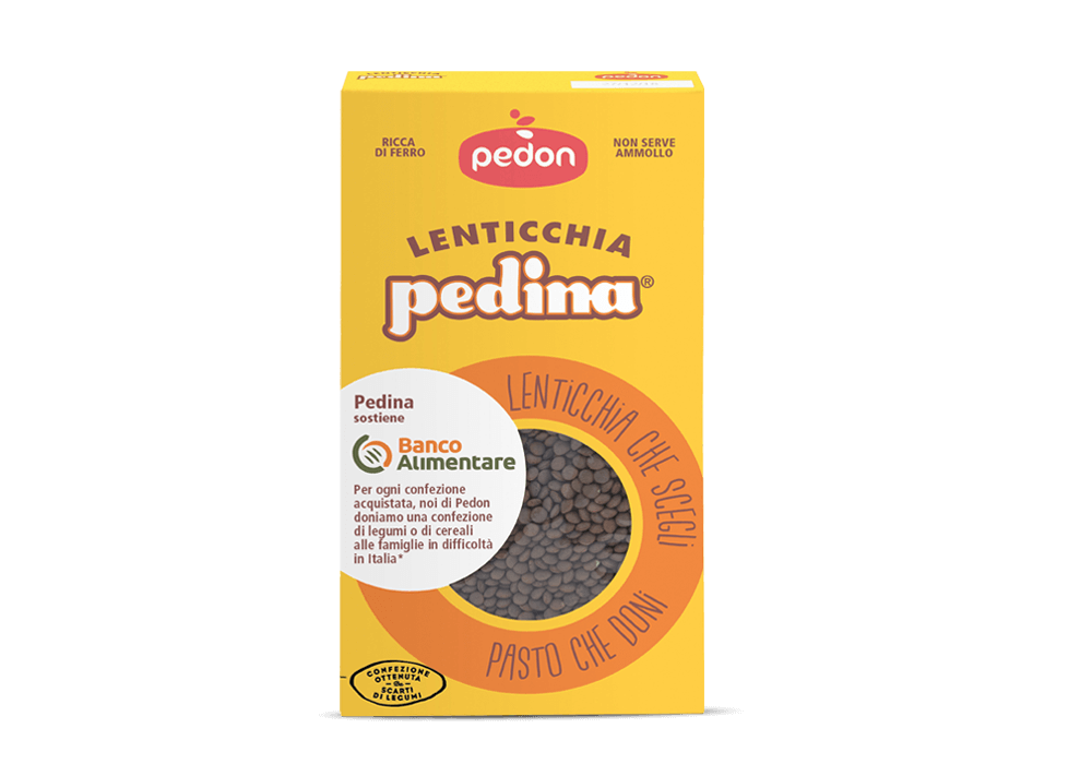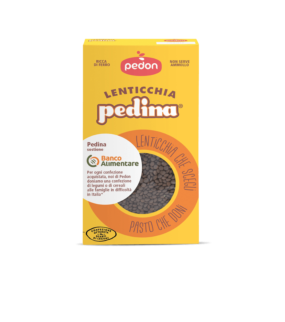 Originating from volcanic landscapes, Pedina lentils are a fine lentil variety that hold their shape extraordinarily well when cooked. And not only do Pedina lentils do you good with their nutritional properties, they help you do good to other people too. Through Pedina Lentils, Pedon supports Banco Alimentare, the Italian food bank, which has been collecting and distributing surplus food to the people who need it most for 30 years. Pedon contributes to help families in need with the donation of more than 55.000 servings of pulses and grains, but also with a contribution to cover the cost for the distribution of 125.000 meals in all national territory.